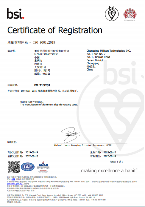 美利信科技—— ISO9001 2015認證證書(2022)