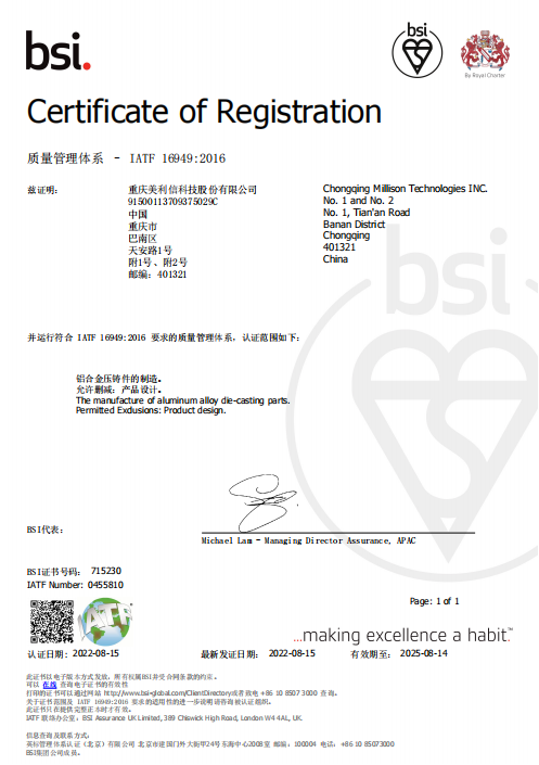 美利信科技——IATF16949 2016認證證書(2022)
